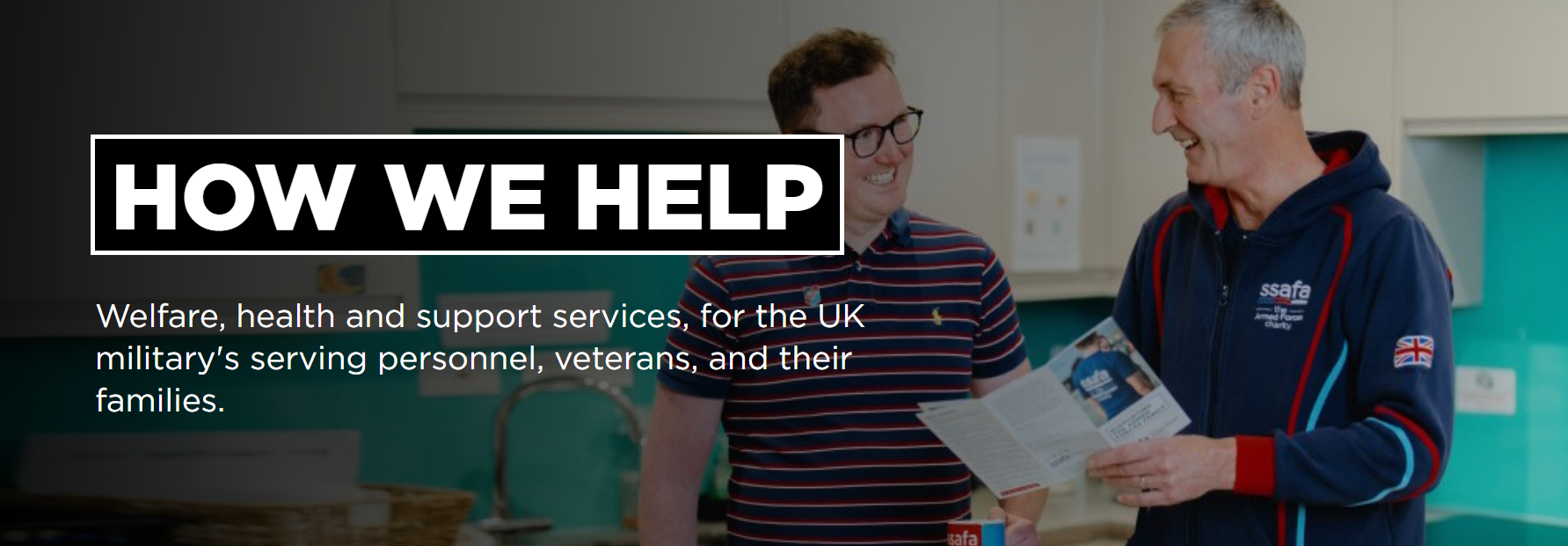 SSAFA helps the armed forces community in a number of ways, though our focus is on providing direct support to individuals in need of physical or emotional care.